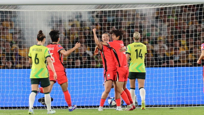 Korea Republic has blown the AFC Women’s Asian Cup open with a stunning X-X victory over Australia to seal top spot in Group A, consigning the hosts to a more treacherous route to the Final if they are to lift the silverware on home soil.